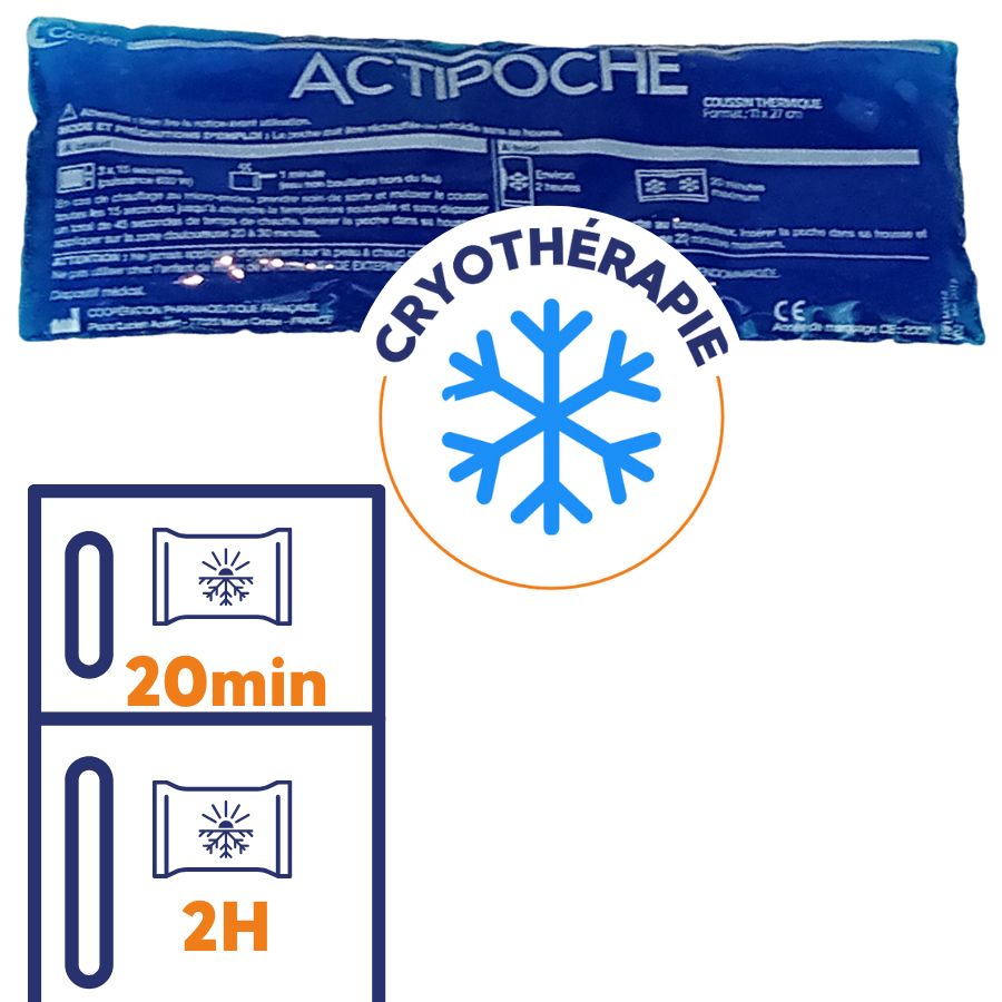 L’Actipoche moyen modèle 27x11 cm est un coussin thermique polyvalent, conçu pour un soulagement rapide et efficace de diverses douleurs grâce à son utilisation en thermothérapie (à chaud) ou en cryothérapie (à froid). Idéal pour traiter les douleurs musculaires, articulaires ou traumatiques, il est indispensable dans votre trousse de soins.