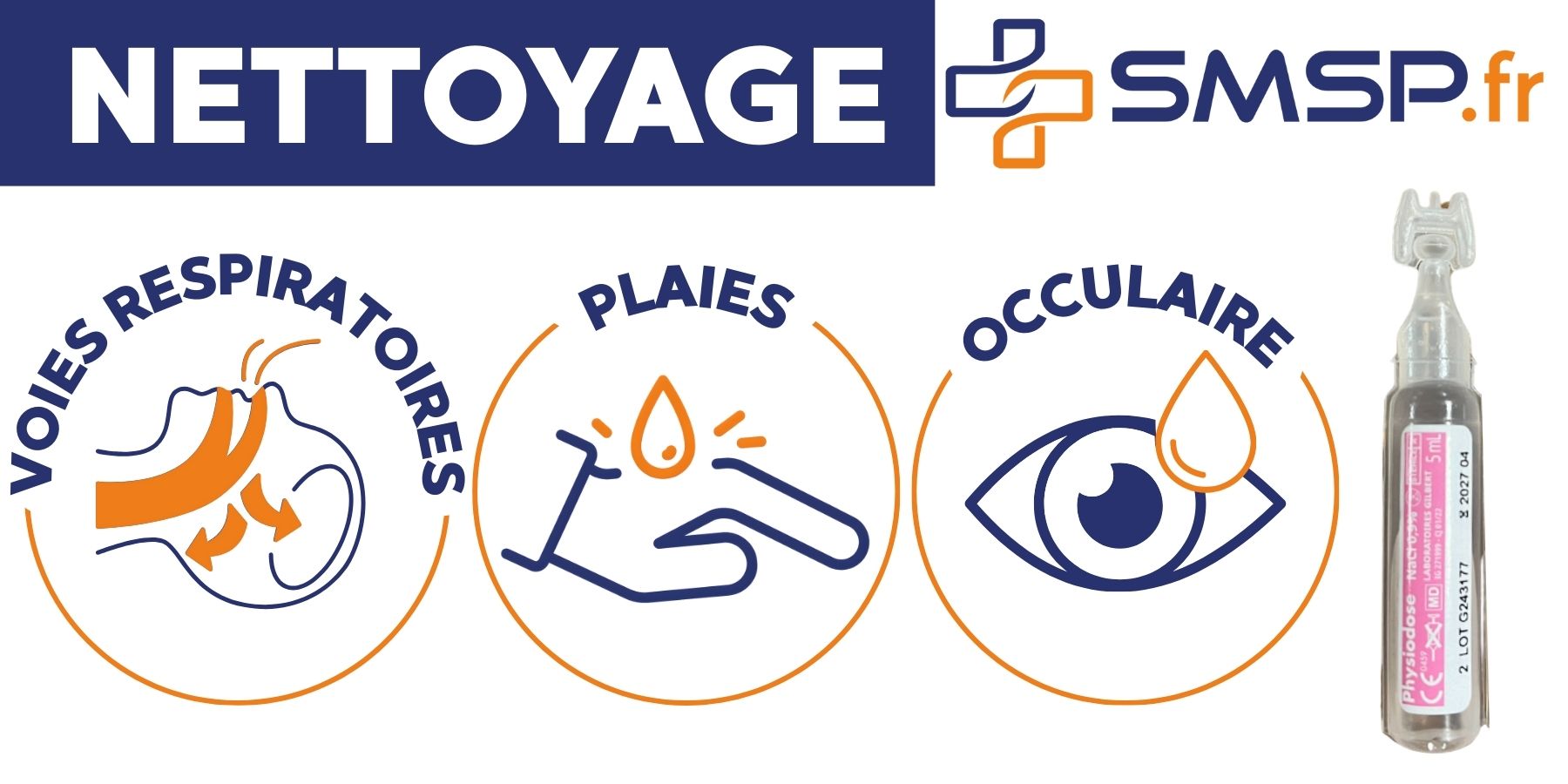 Soins des plaies : Pour nettoyer les plaies mineures et favoriser la cicatrisation. Le sérum physiologique peut être utilisé pour rincer les plaies avant l'application d'un pansement ou d'un traitement.